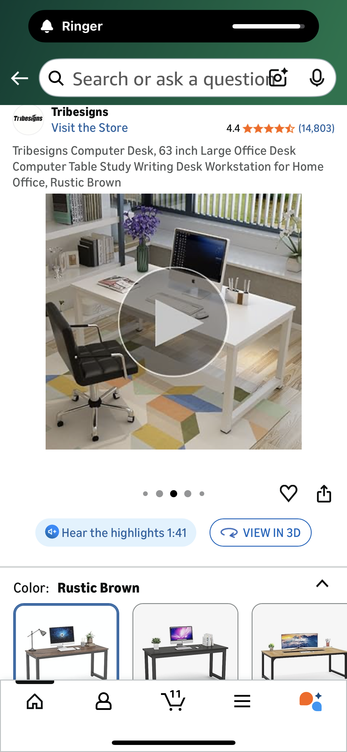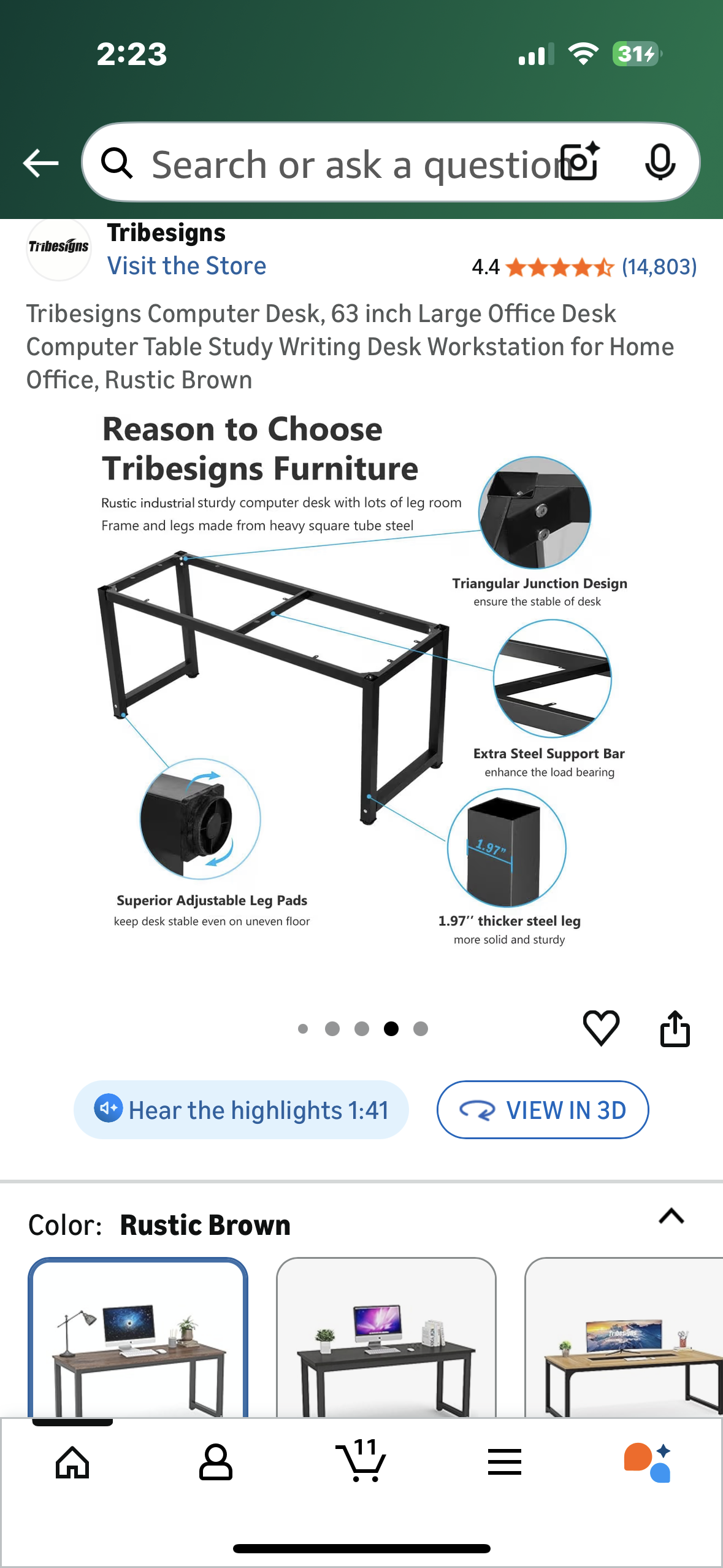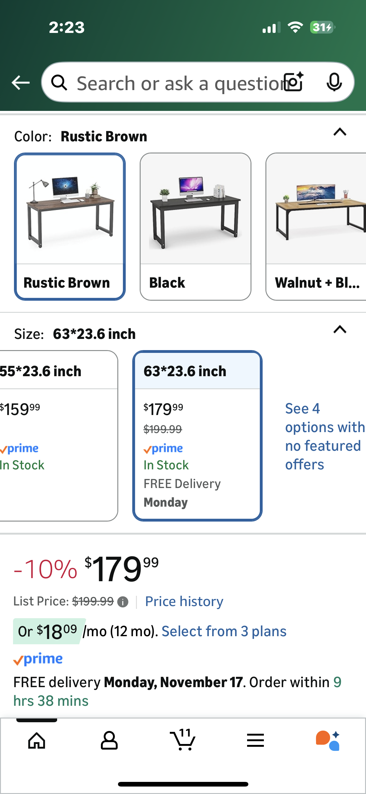 Tribesigns Computer Desk, 63 inch Large Office Desk, Computer Table, Study or Writing Desk, Workstation for Home Office, Rustic Brown (O459)