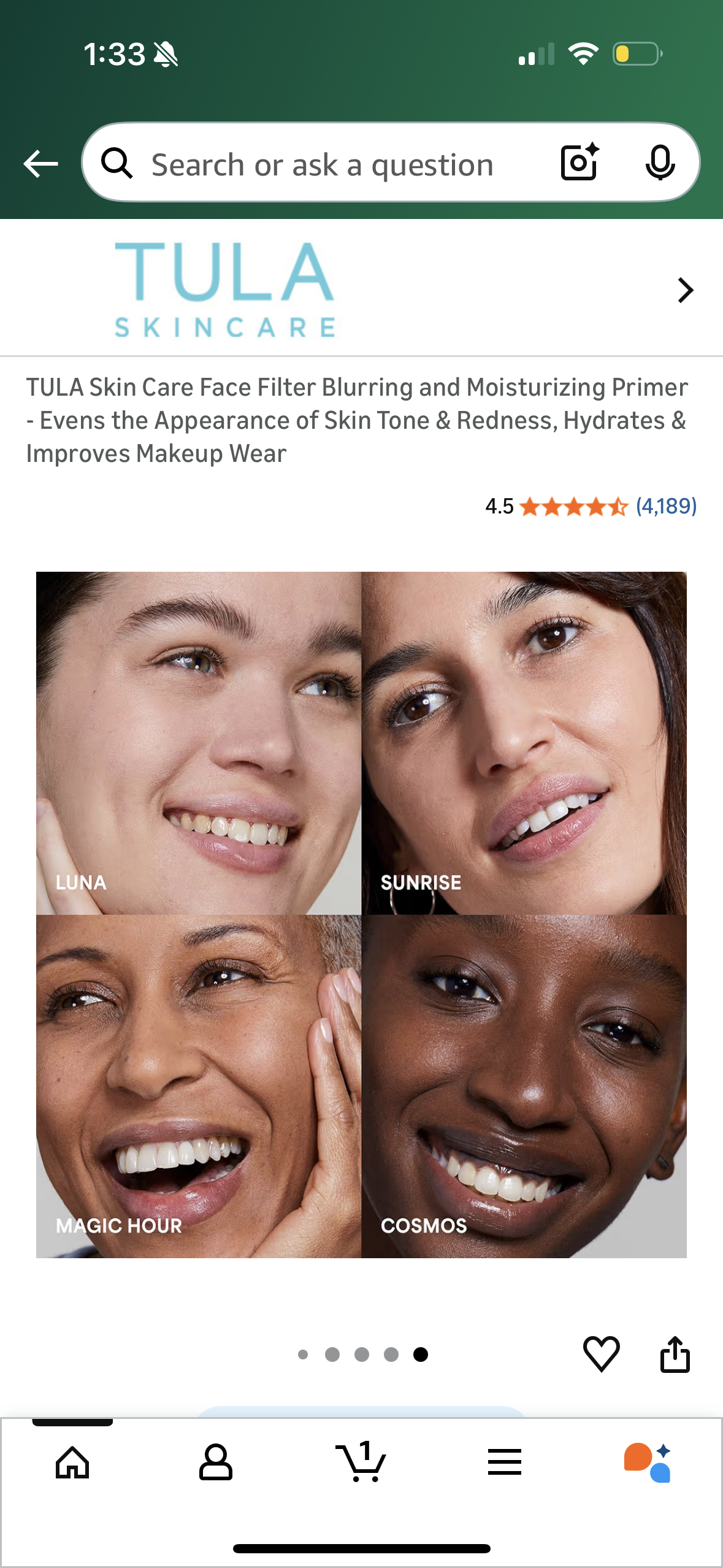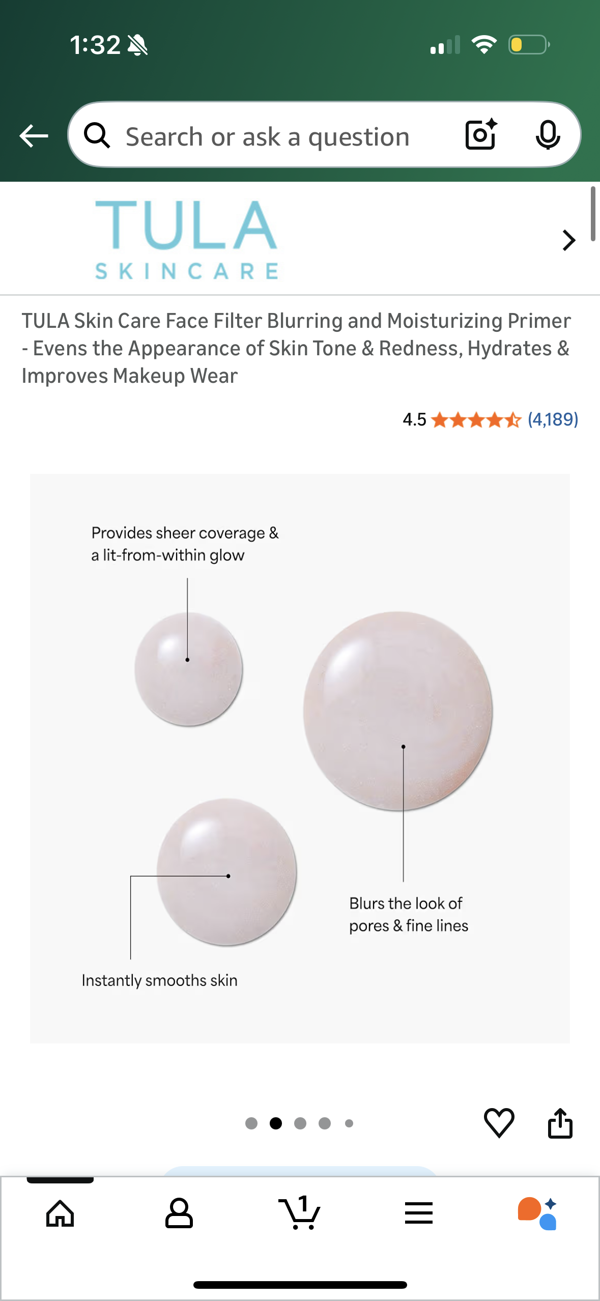 TULA Skin Care Face Filter Blurring and Moisturizing Primer - Evens the Appearance of Skin Tone & Redness, Hydrates & Improves Makeup Wear