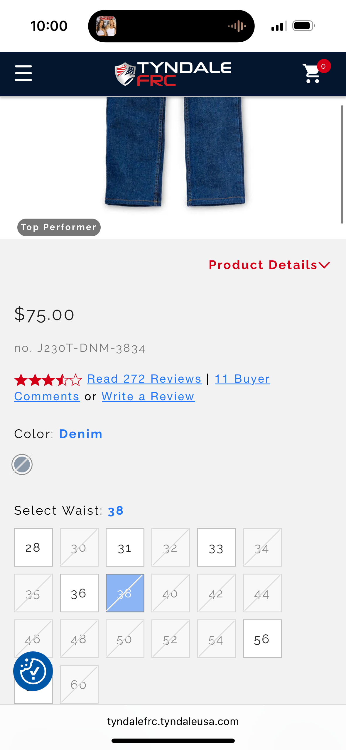 Tyndale Men's Classic Relaxed Fit Fire Resistant Work Jeans (Size 38x34)