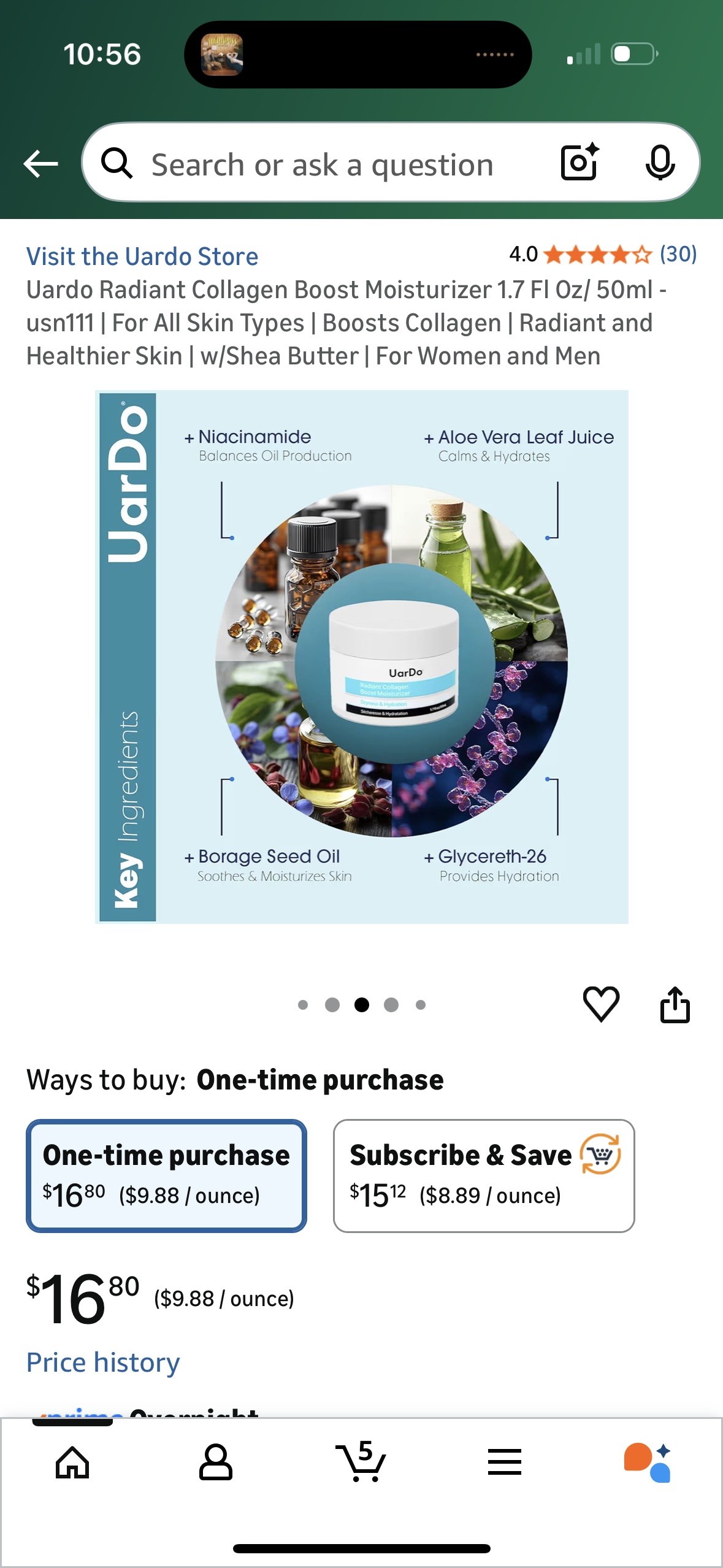 Uardo Radiant Collagen Boost Moisturizer 1.7 Fl Oz/ 50ml - usn111 | For All Skin Types | Boosts Collagen | Radiant and Healthier Skin | w/Shea Butter | For Women and Men