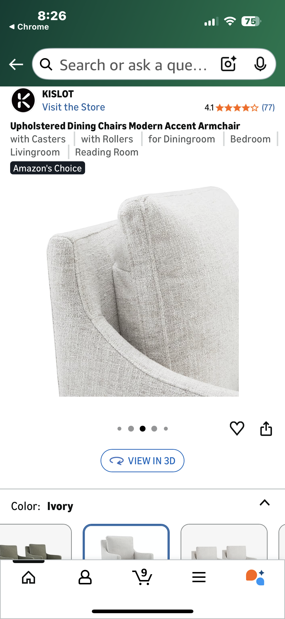 Note: Cover to chair is ivory.