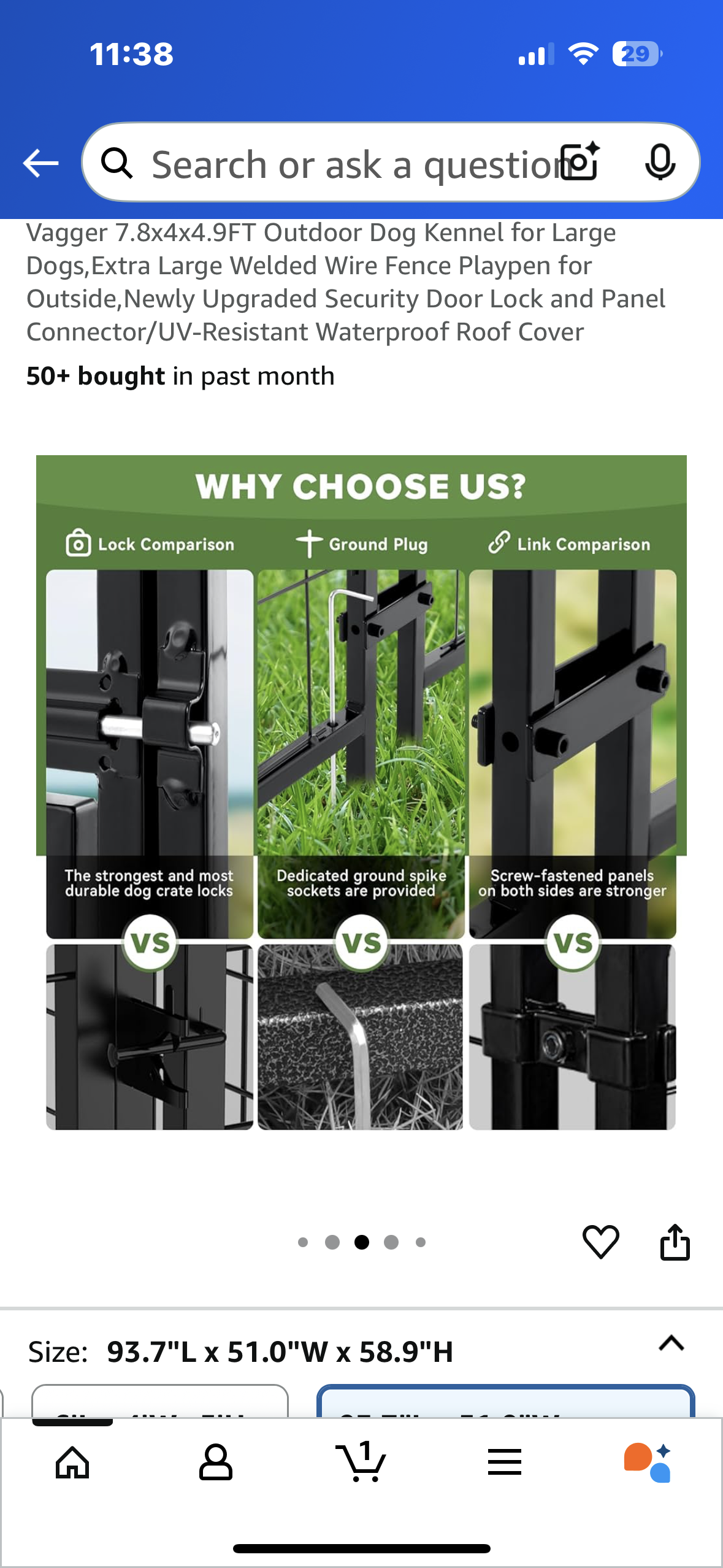 Vagger 7.8x4x4.9FT Outdoor Dog Kennel for Large Dogs,Extra Large Welded Wire Fence Playpen for Outside, Security Door Lock and Panel Connector/UV-Resistant Waterproof Roof Cover (R686)