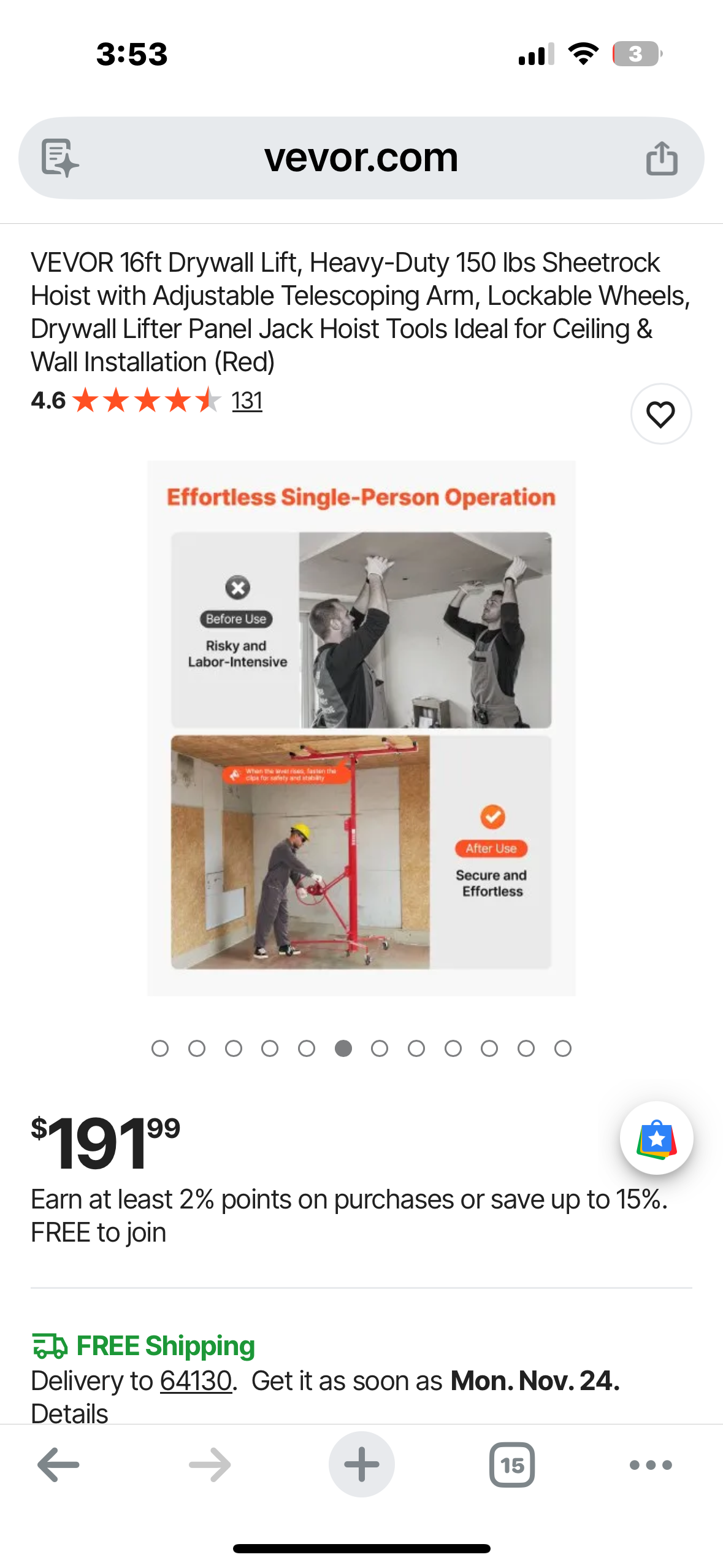 VEVOR 16ft Drywall Lift, Heavy-Duty 150 lbs Sheetrock Hoist with Adjustable Telescoping Arm, Lockable Wheels, Drywall Lifter Panel Jack Hoist Ideal for Ceiling & Wall Installation (Red) (G927)