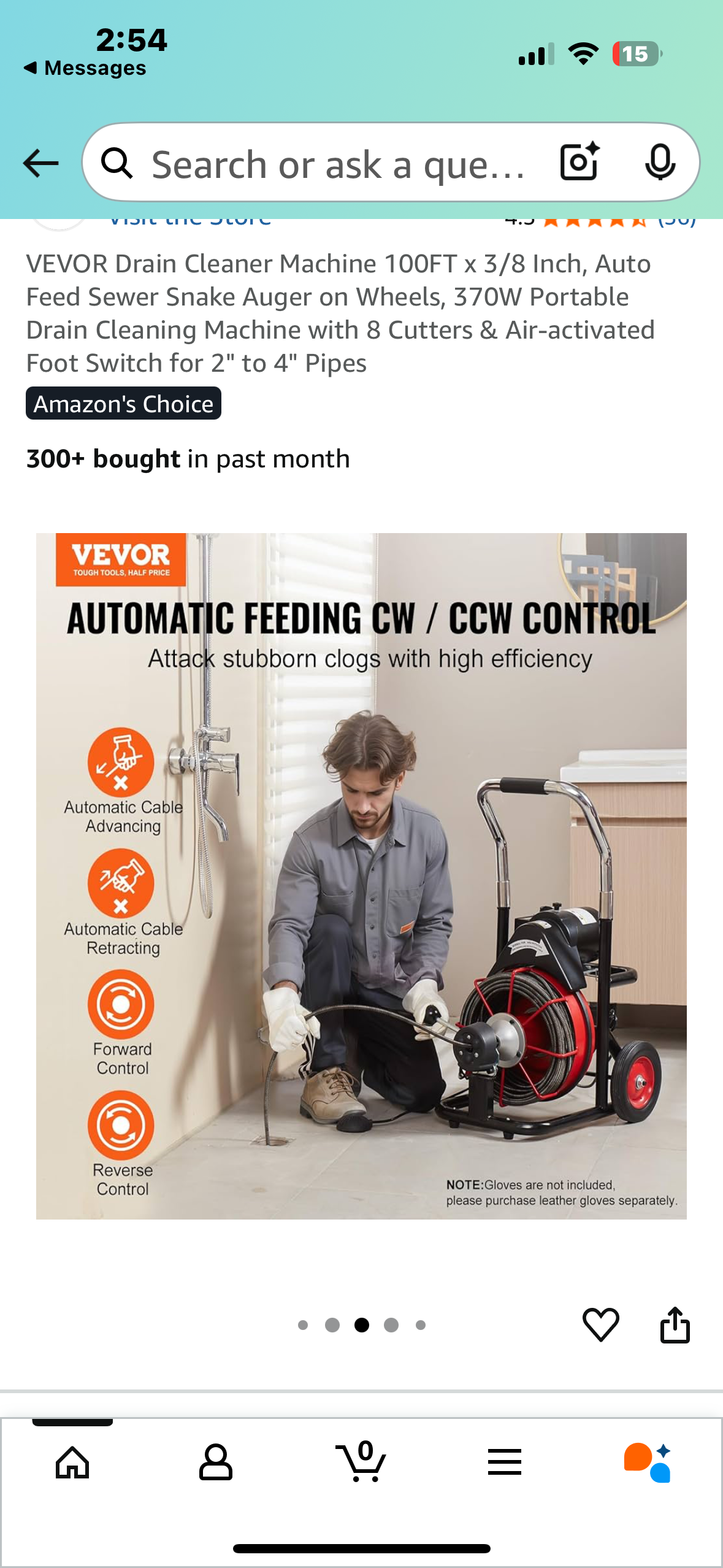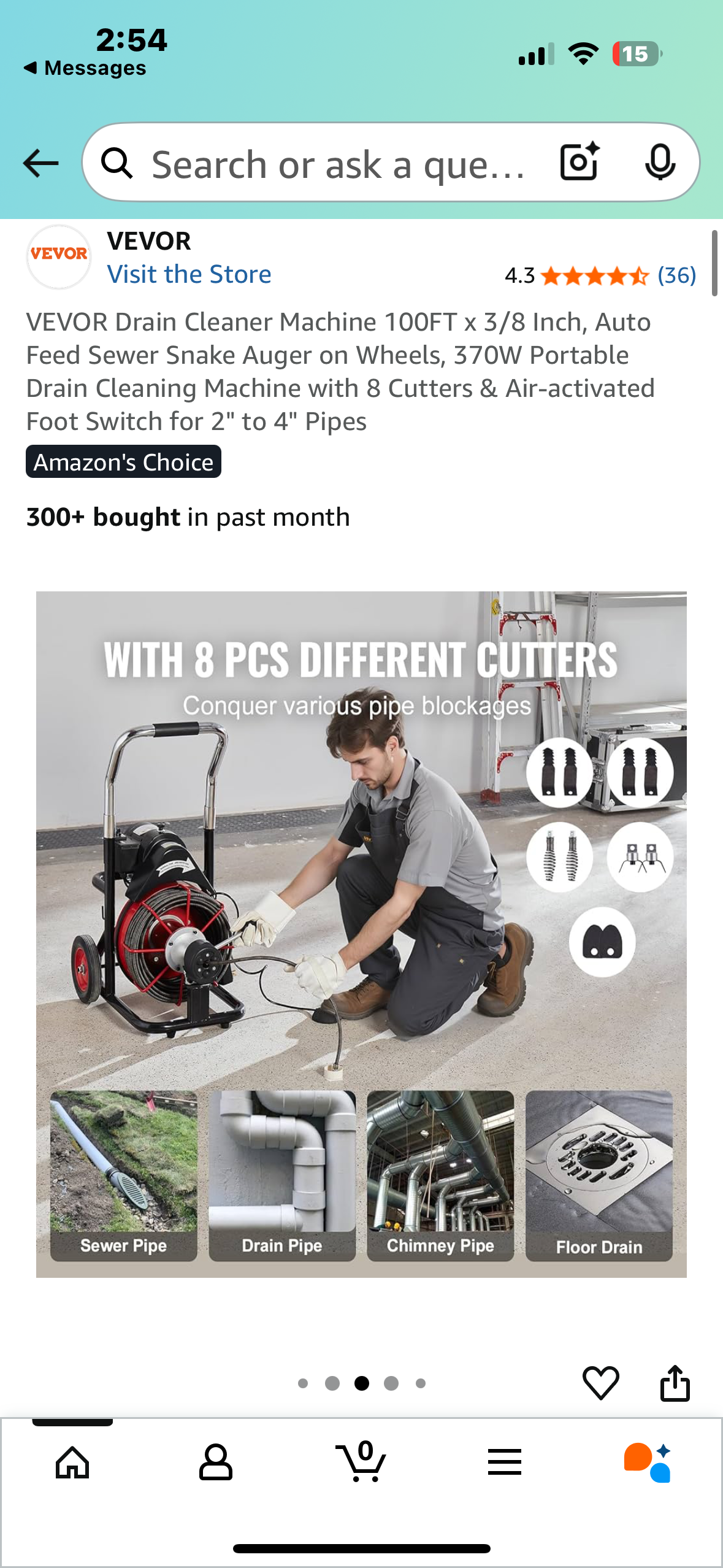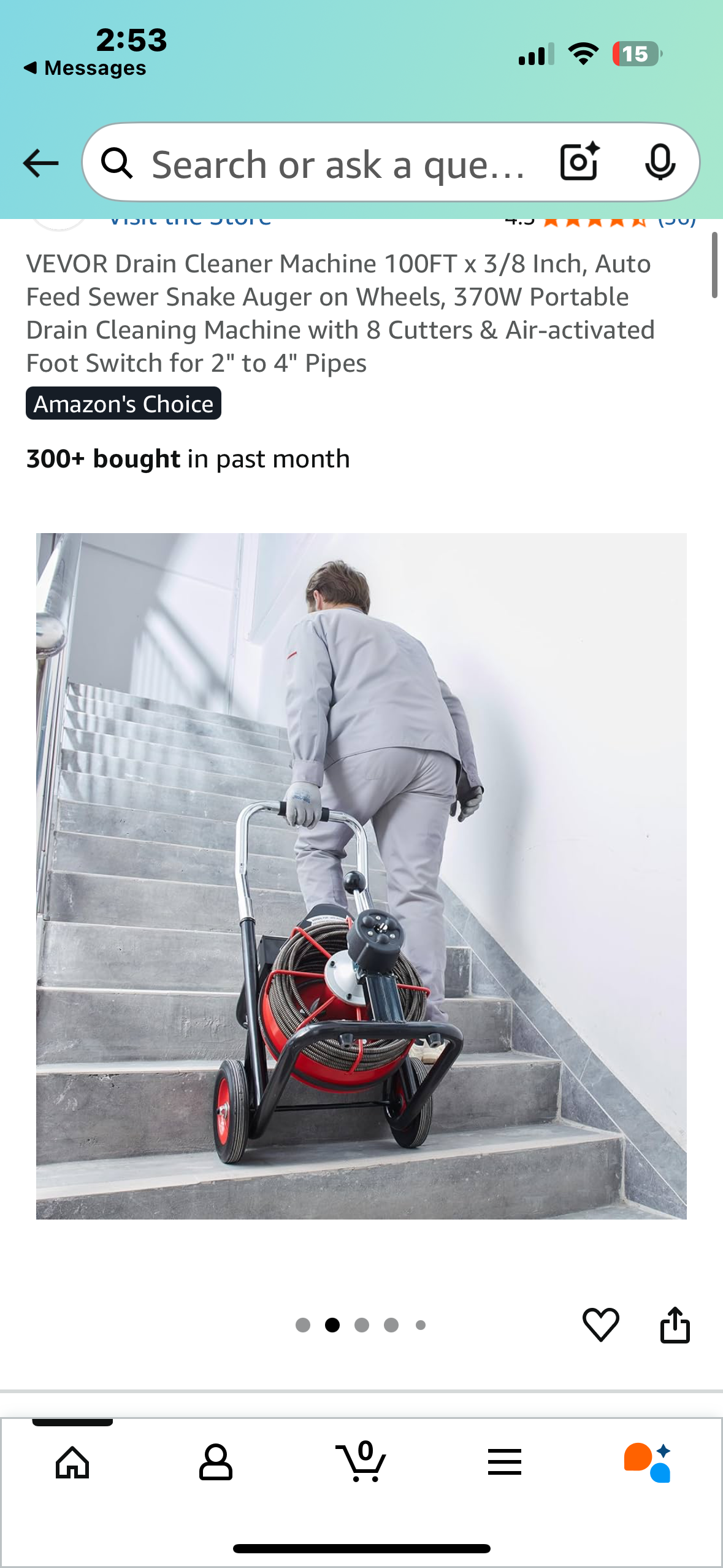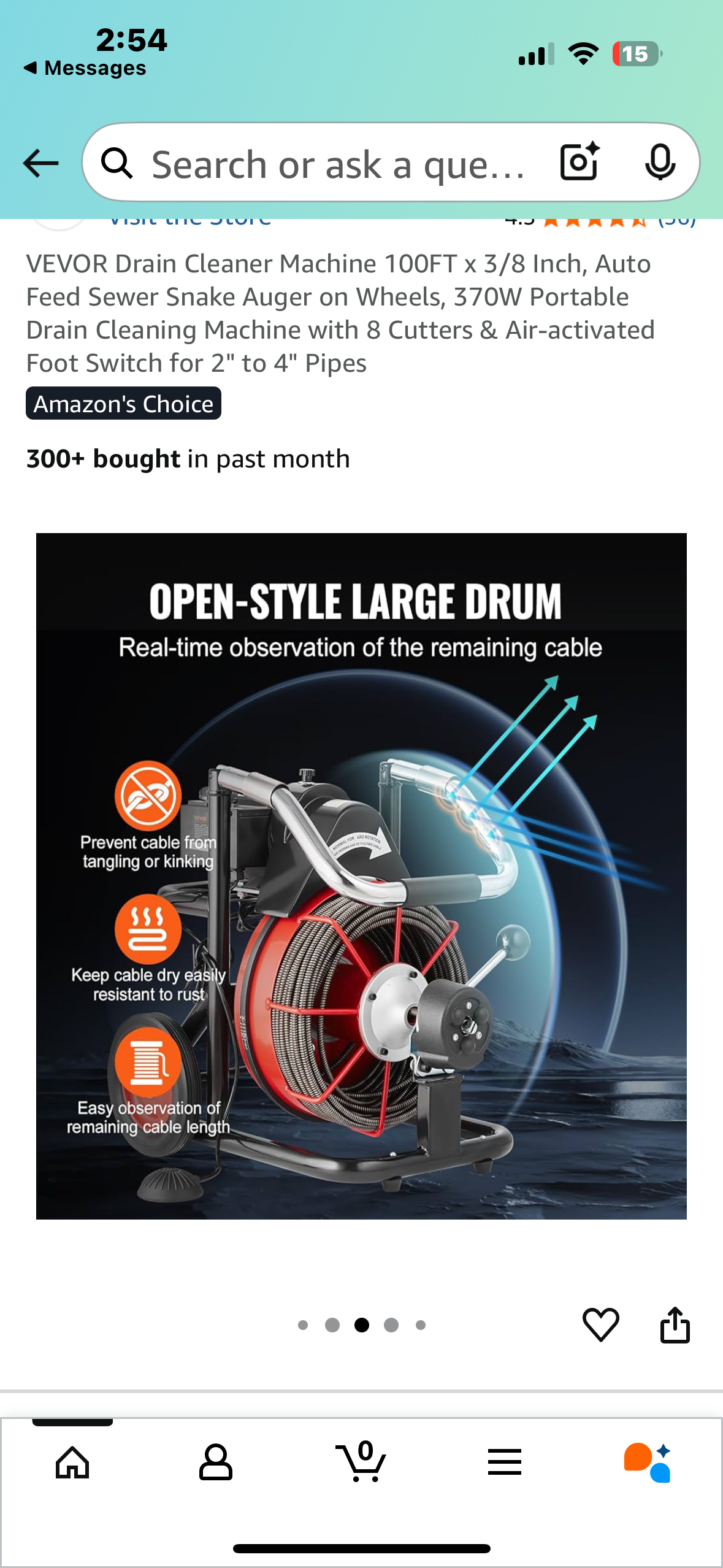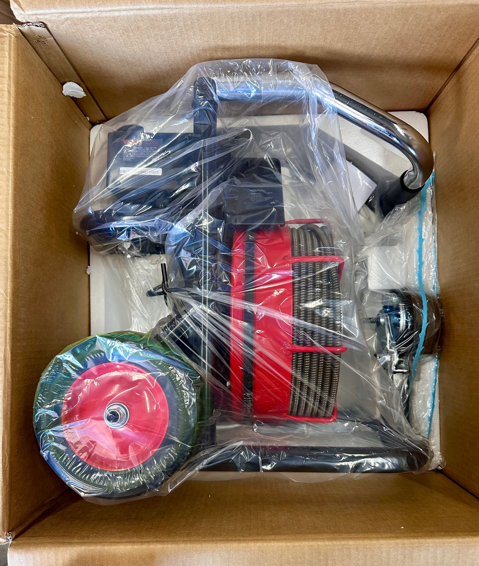 VEVOR Drain Cleaner Machine 100FT x 3/8 Inch, Auto Feed Sewer Snake Auger on Wheels, 370W Portable Drain Cleaning Machine with 8 Cutters & Air-activated Foot Switch for 2" to 4" Pipes (G867)