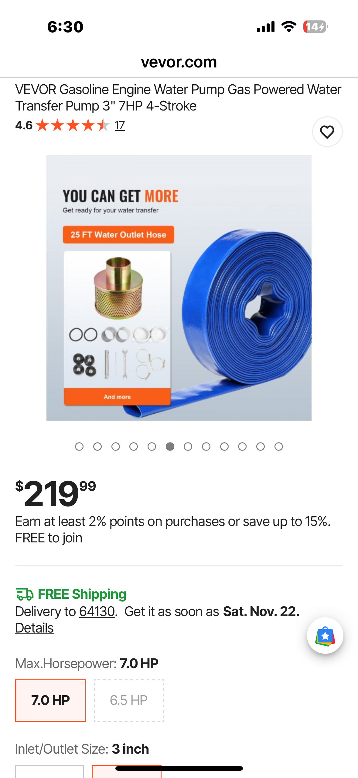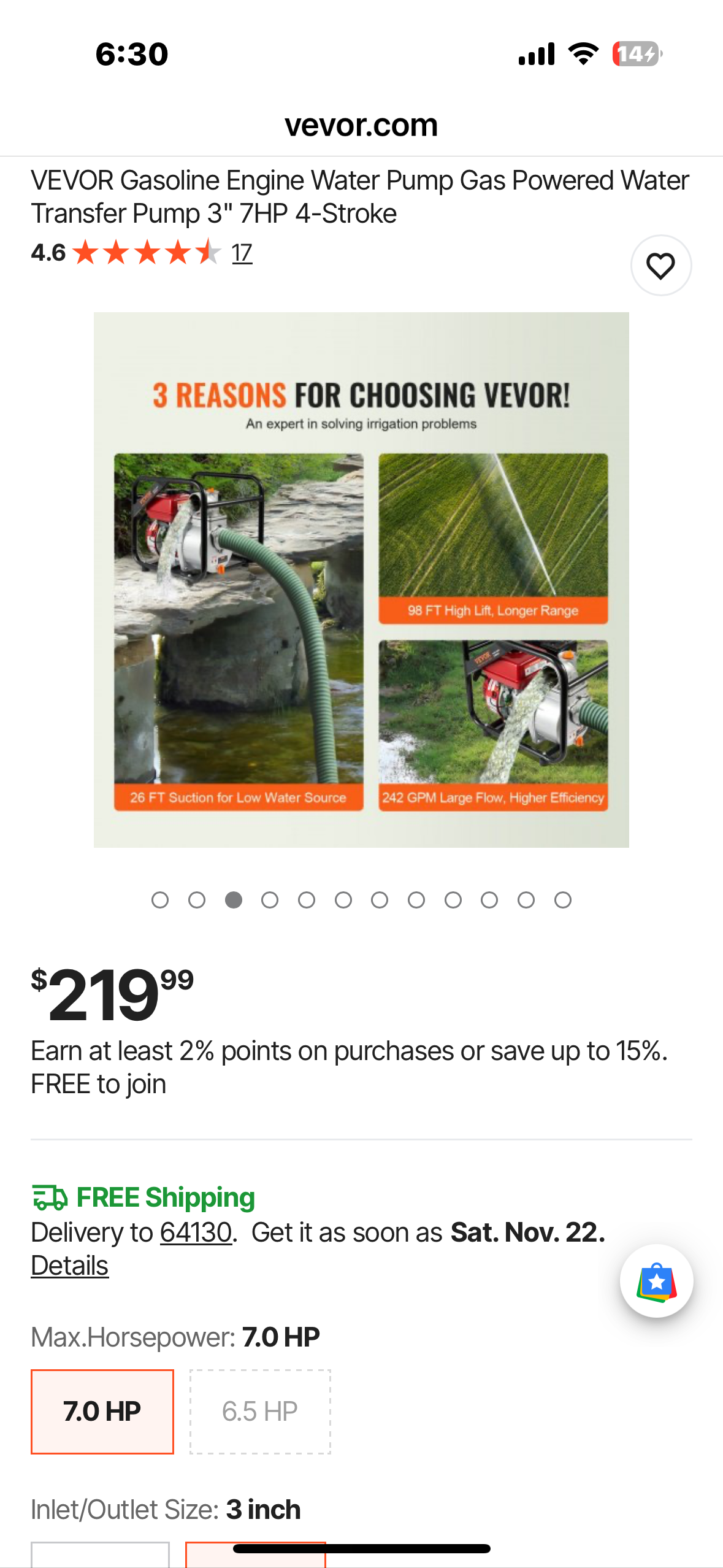 VEVOR Gasoline Engine Water Pump Gas Powered Water Transfer Pump 3" 7HP 4-Stroke (G924)