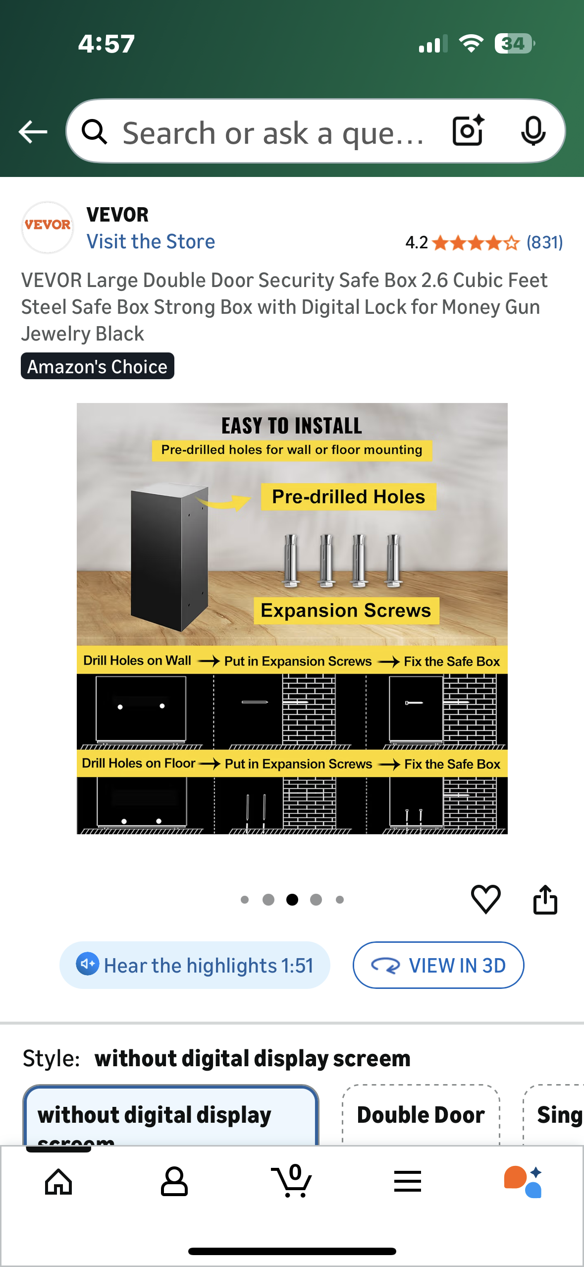 VEVOR Large Double Door Security Safe Box, 2.6 Cubic Feet, Steel Safe Box, Strong Box with Digital Lock for Money, Gun, Jewelry, Black (O461)