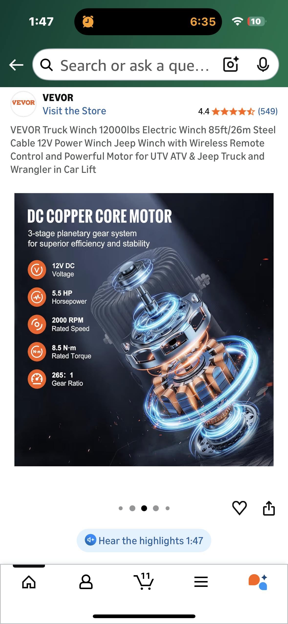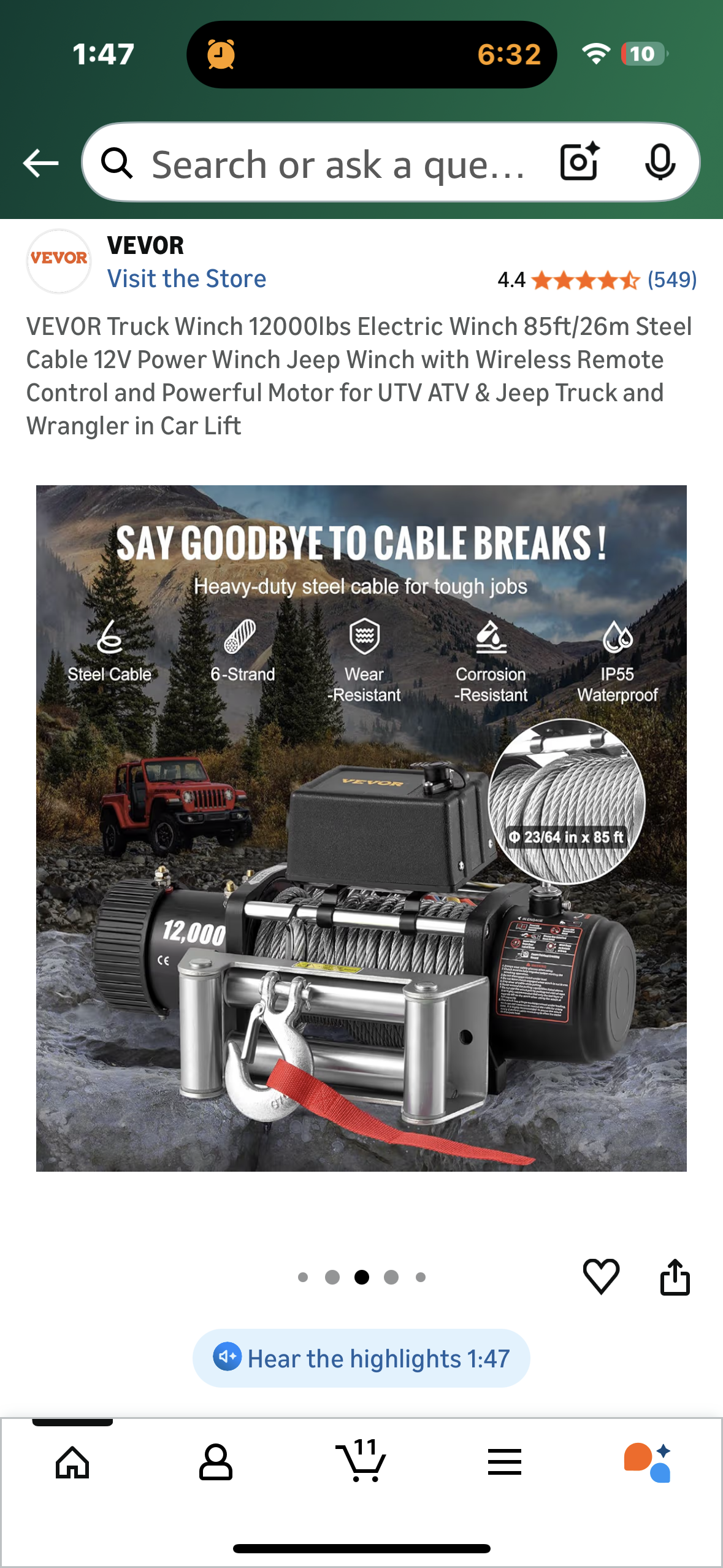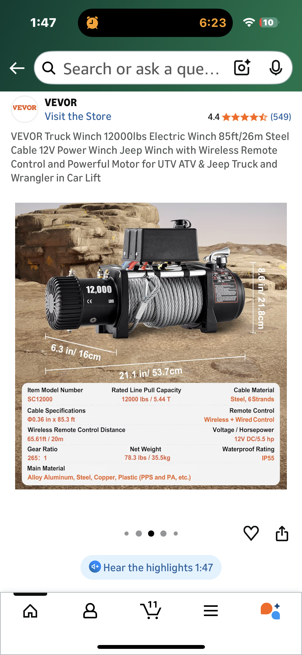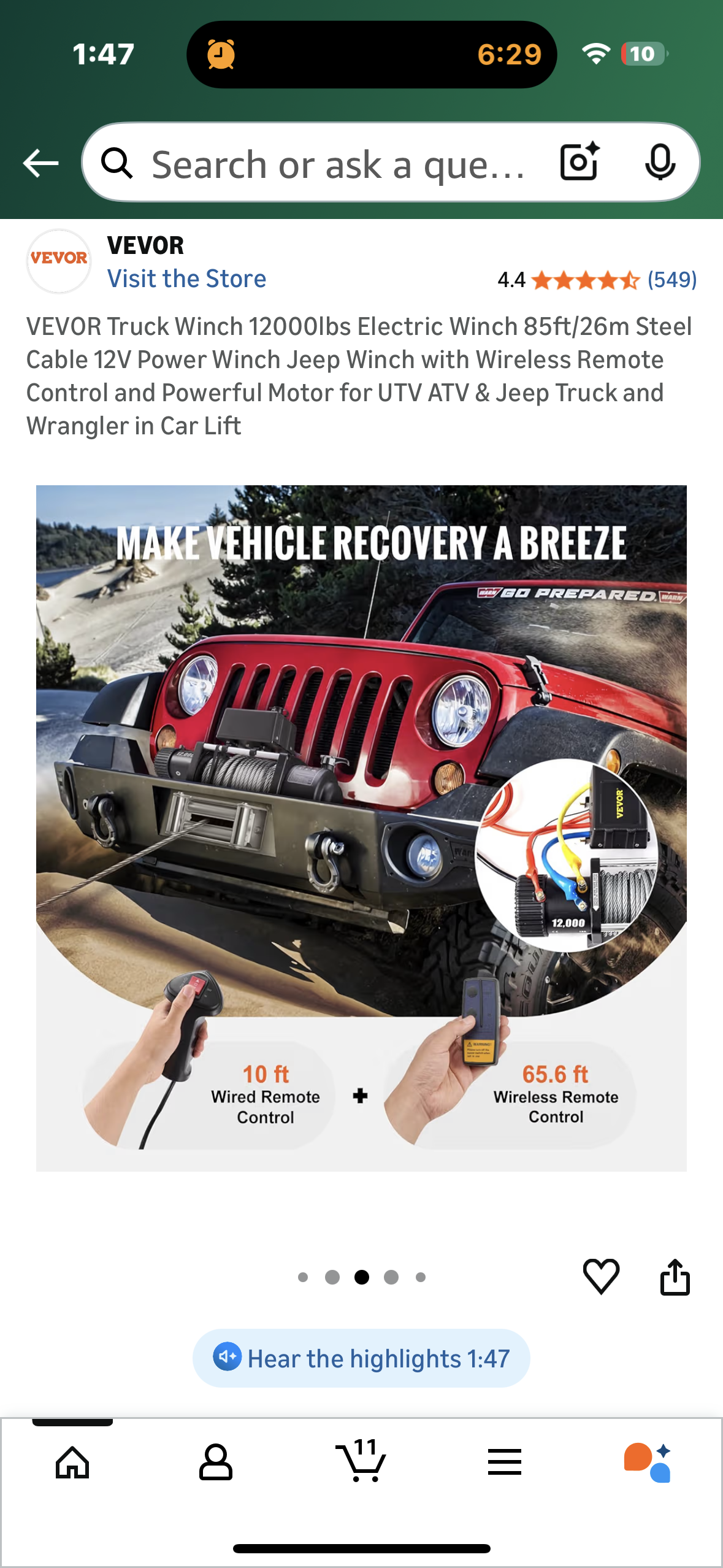 VEVOR Truck Winch 12000lbs Electric Winch, 85ft/26m Steel Cable 12V Power Winch with Wireless Remote Control and Powerful Motor for UTV, ATV, Jeep, Truck (G906)