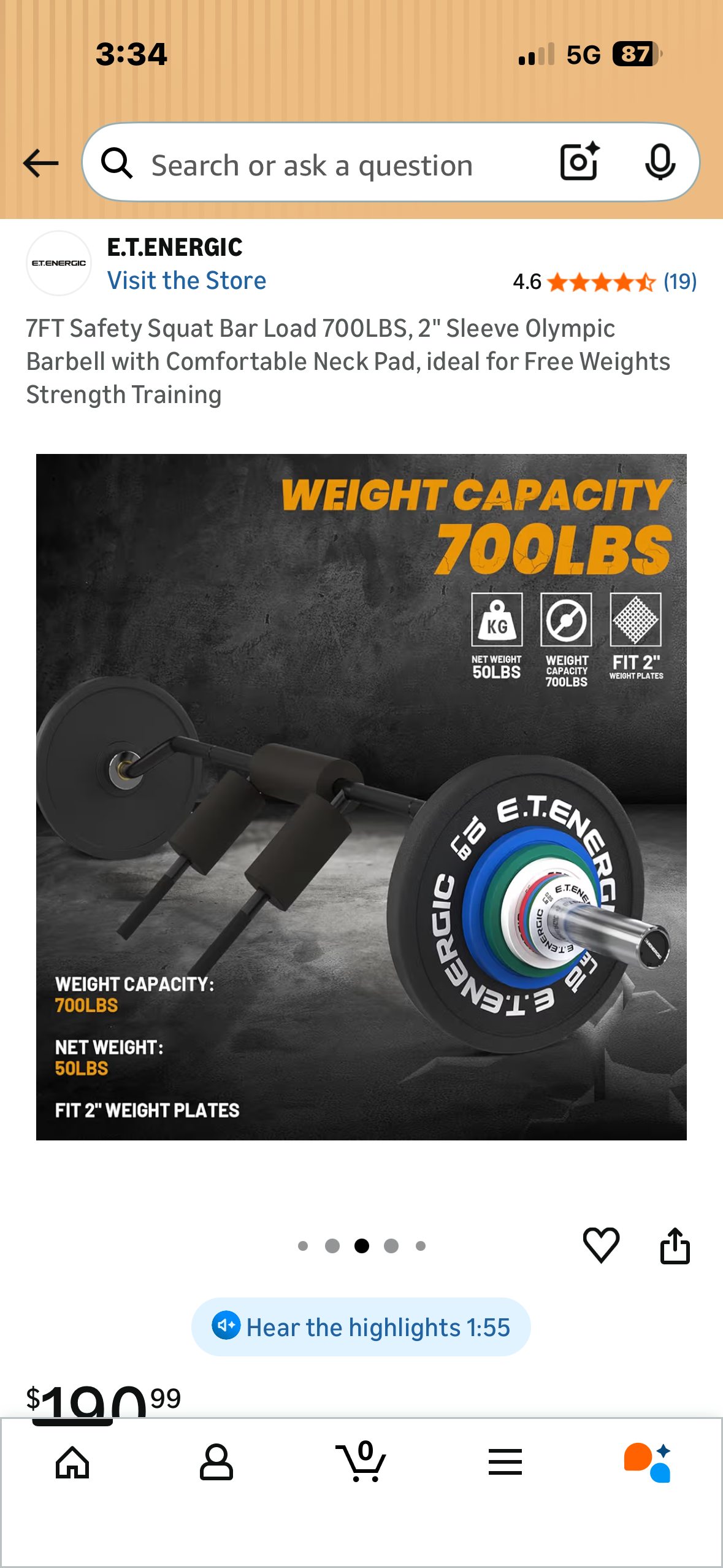 7FT Safety Squat Bar Load 700LBS, 2" Sleeve Olympic Barbell with Comfortable Neck Pad, Ideal for Free Weight Strength Training (W632)