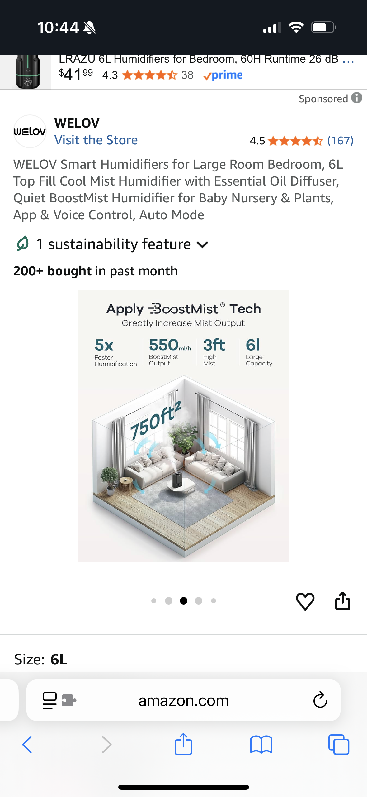 WELOV Smart Humidifiers for Large Room Bedroom, 6L Top Fill Cool Mist Humidifier with Essential Oil Diffuser, Quiet BoostMist Humidifier for Baby Nursery & Plants, App & Voice Control, Auto Mode