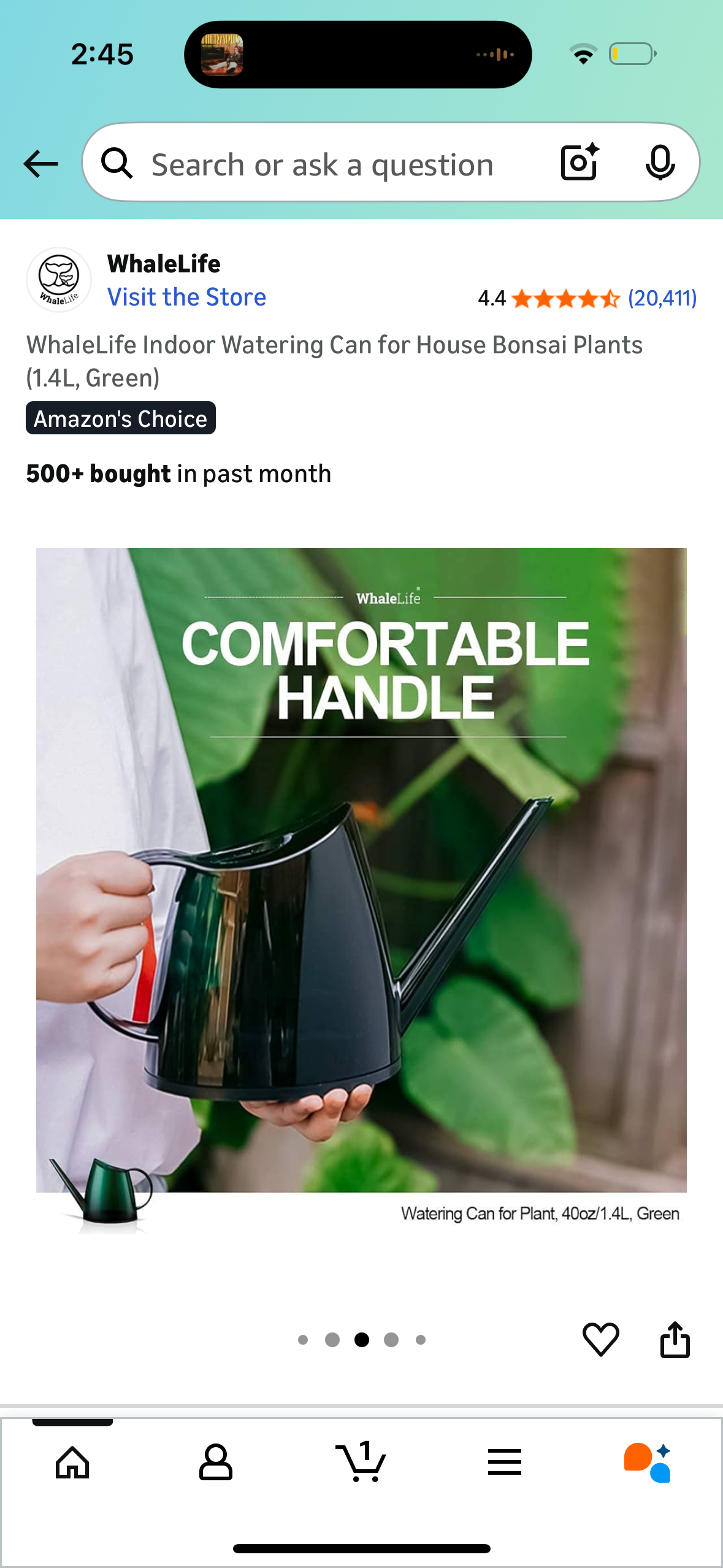WhaleLife Indoor Watering Can for House Bonsai Plants (1.4L, Green)