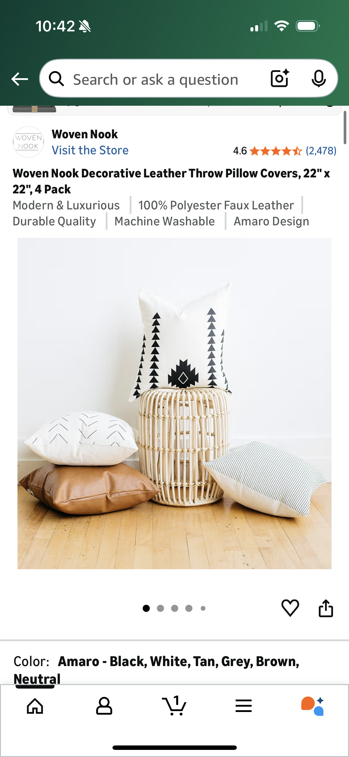 Woven Nook Decorative Leather Throw Pillow Covers, 22" x 22", 4 Pack