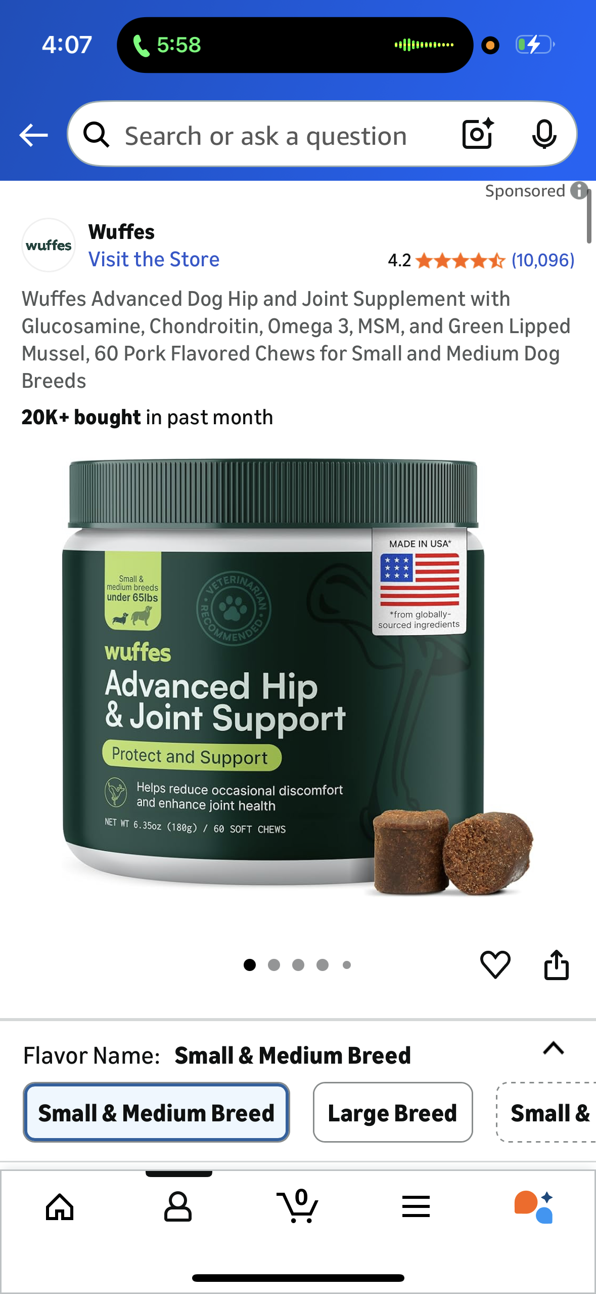 Wuffes Advanced Dog Hip and Joint Supplement with Glucosamine, Chondroitin, Omega 3, MSM, and Green Lipped Mussel, 60 Pork Flavored Chews for Small and Medium Dog Breeds