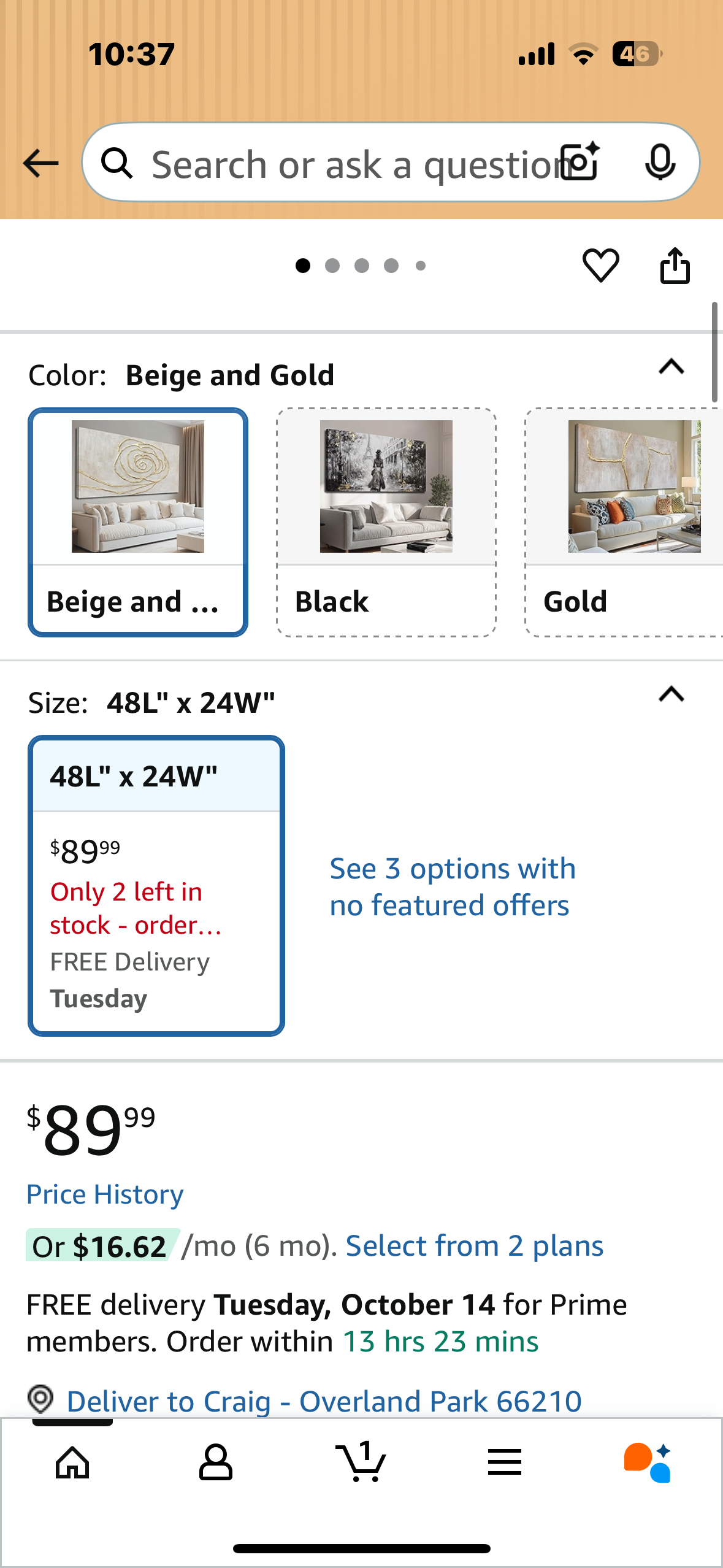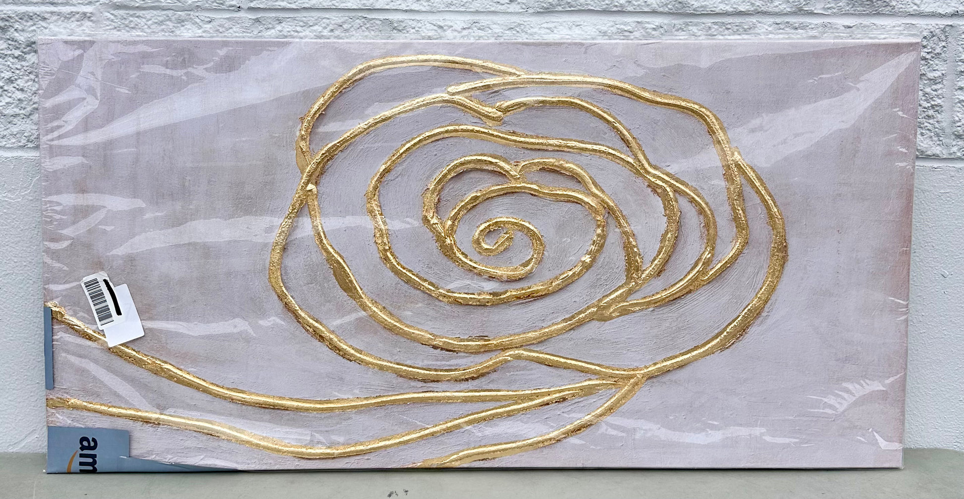 Textured Wall Art Canvas, Beige and Gold Wall Decor, 24"x48" Artwork for Home or Office (L1028)
