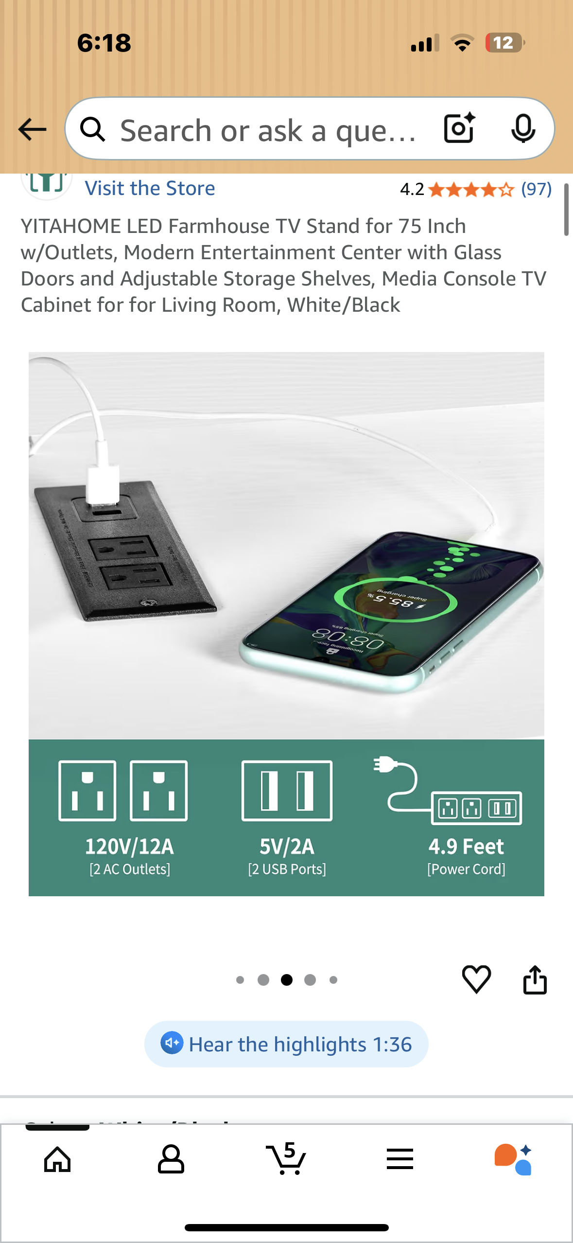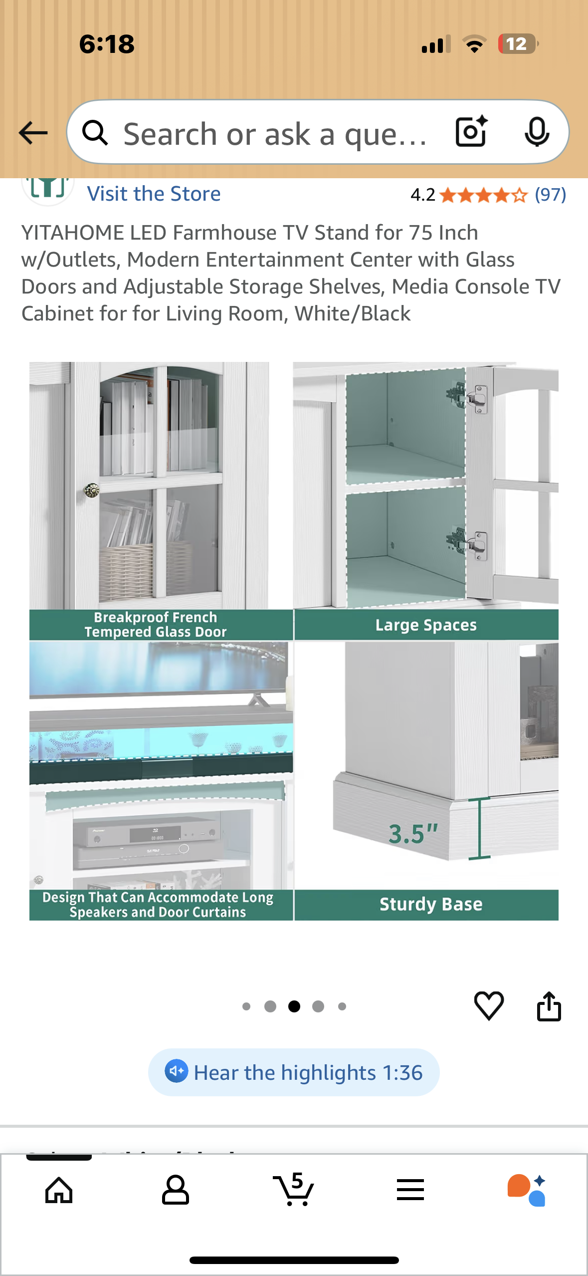 YITAHOME LED Farmhouse TV Stand for 75 Inch w/Outlets, Modern Entertainment Center with Glass Doors and Adjustable Storage Shelves, Media Console TV Cabinet for for Living Room, White/Black (L1064)