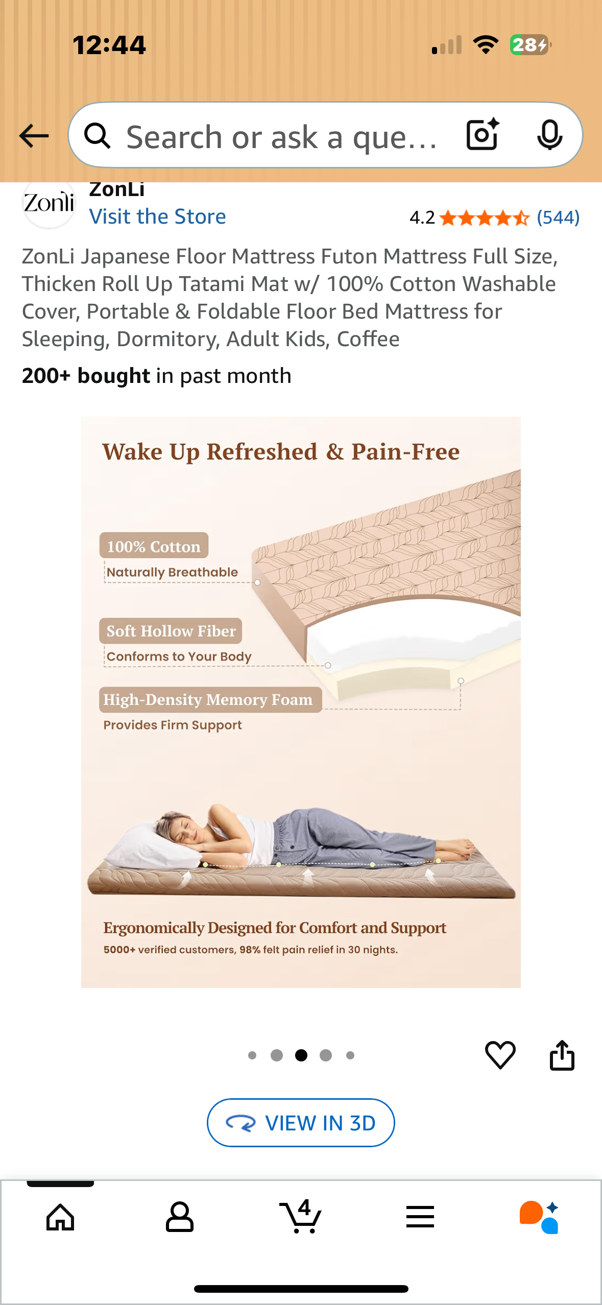 ZonLi Japanese Floor Mattress, Futon Mattress, Full Size, Thick Roll Up Tatami Mat w/ 100% Cotton Washable Cover, Portable & Foldable Floor Bed Mattress for Sleeping, Dormitory, Adult Kids, Coffee (B1121)