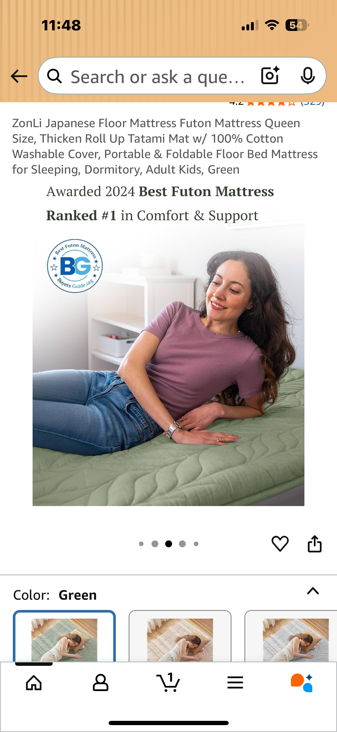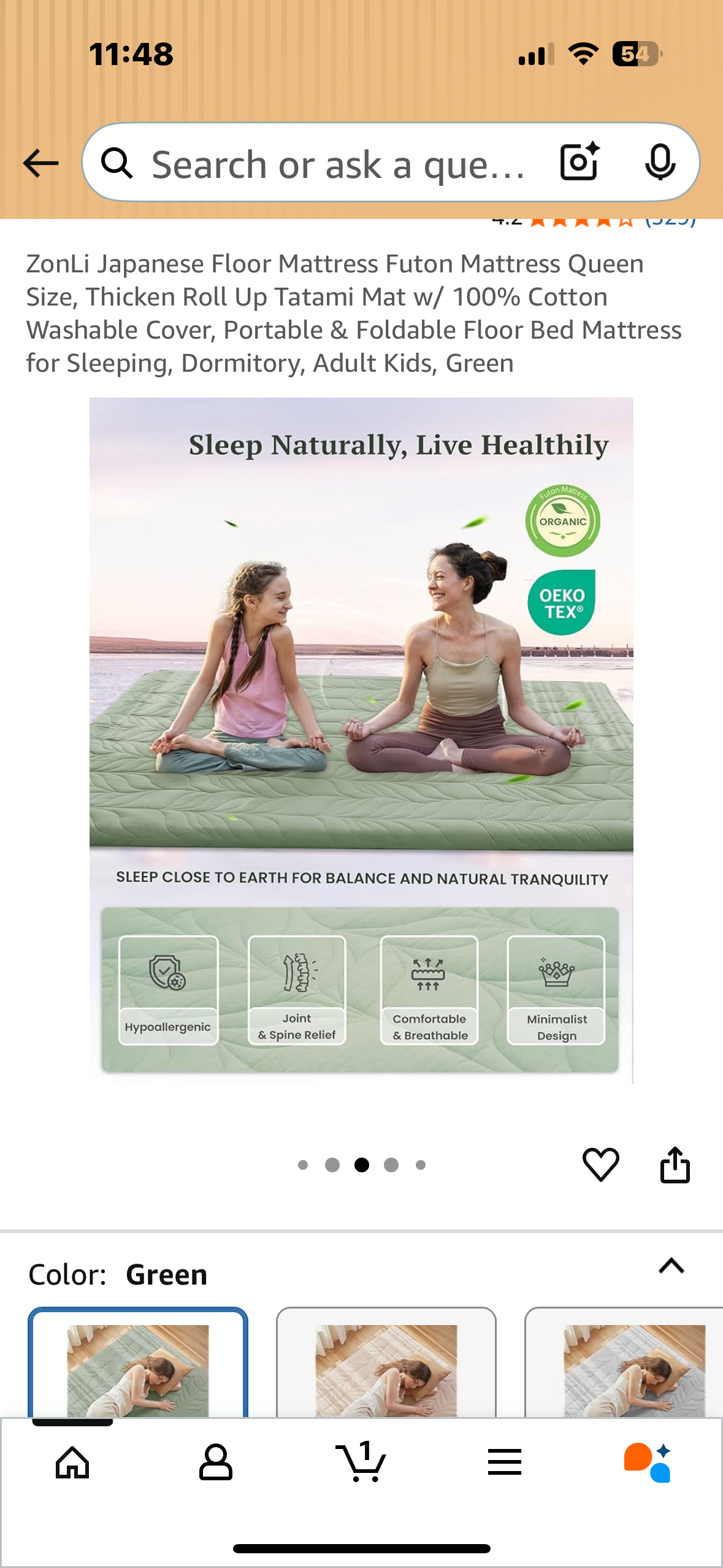 ZonLi Queen Size Japanese Floor Mattress, Futon Mattress, Thick Roll Up Tatami Mat w/ 100% Cotton Washable Cover, Portable & Foldable Tatami Mattress for Sleeping, Dormitory, Green (B1111)